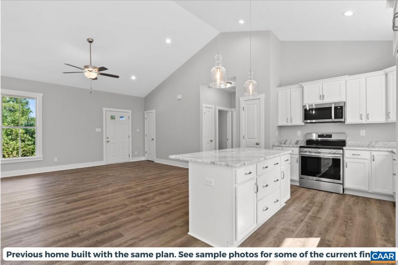 OPEN-CONCEPT 3-BEDROOM, 2-BATH HOME ON 3 PRIVATE ACRES IN BUCKINGHAM COUNTY! This Laurel Creek plan offers modern comfort in a serene, spacious setting. The great room with cathedral ceiling flows seamlessly into the kitchen and dining areas, perfect for entertaining or everyday living. The kitchen features granite countertops, Merillat cabinets, a central island, and pantry, while LVP flooring runs throughout the main living spaces for durability and easy care. Cozy bedrooms with plush carpeting provide restful retreats, and stylish bathrooms feature modern fixtures. Outside, enjoy 5.5 acres of privacy and space for outdoor activities or simply relaxing in nature. This home combines peaceful rural living with convenient access to schools, amenities, and recreation. Dont miss your chance to own this exceptional Buckingham County property! Slated for completion August 2026.